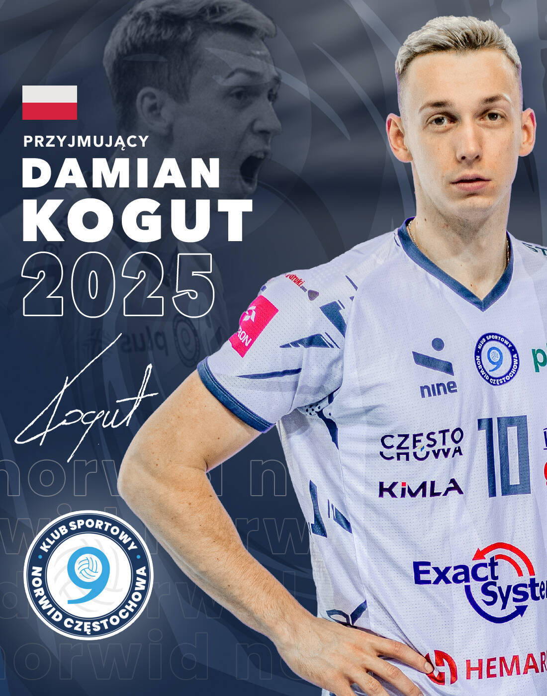 Damian Kogut to ulubieniec częstochowskiej publiczności, a jednocześnie zawodnik z najdłuższym stażem, jeśli chodzi o występy w klubie spod Jasnej Góry. Grał w Norwidzie w latach 2013-21 oraz 2022-24.