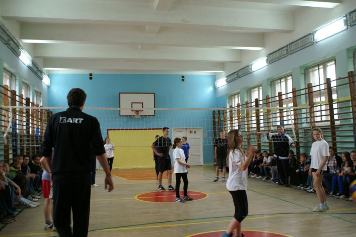 Blisko 80 uczniów gimnazjum i szkoły podstawowej wzięło udział w treningu pokazowym prowadzonym przez zawodników Farta Kielce: Rafała Buszka i Rafała Sokołowskiego. Zajęcia z piłki siatkowej zakończył mecz gimnazjalistów wzmocnionych zawodnikami Farta. Po rywalizacji sportowej przyszedł czas na wspólne zdjęcia, autografy i pytania do Farciarzy. Dzieci i młodzież chcieli wiedzieć kiedy siatkarze zaczęli swoją przygodę ze sportem, ile mają wzrostu, jakich rozmiarów buty noszą, czy lubią lasagne...