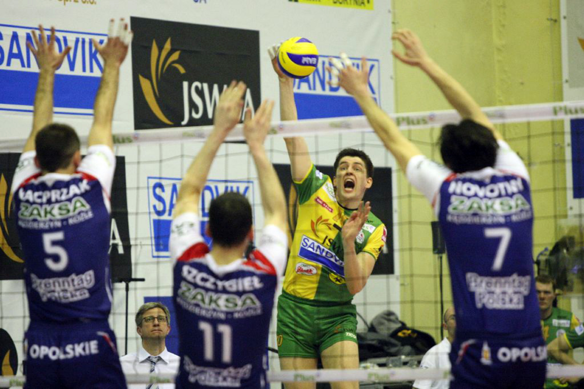 Mimo to w jakości ich gry na środku nie było widać najmniejszej różnicy. Michał Masny, dysponując dobrym przyjęciem co rusz uruchamiał Sławomira Szczygła i Wojciecha Kazimierczaka, a ci praktycznie każdą piłkę zamieniali na punk. Do tego goście rozpoczęli z wysokiego "c” w polu serwisowym (dwa asy Michała Ruciaka - 8:10), utrudniając rywalom wyprowadzanie akcji. W konsekwencji jastrzębianie przez połowę pierwszej partii grali prawie wyłącznie Guillaume Samiką. Słabo spisywał się natomiast australijski duet Yudin - Hardy, który tym razem zbyt długo nie zagrzał miejsca na boisku. Set otwarcia, po punktującej zagrywce Jakuba Novotnego padł łupem kędzierzynian.