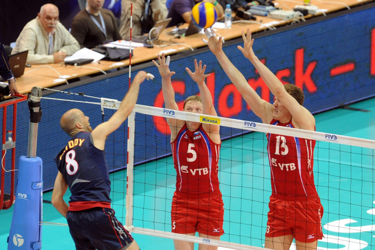 Emocje pustawych trybun w Ergo Arenie nie udzieliły się, przynajmniej początkowo, inaugurującym turniej finałowy LŚ reprezentacjom Rosji i Stanów Zjednoczonych, które w pierwszym secie prowadziły zaciętą walkę. Amerykanie długo byli na prowadzeniu (8:6, 16:14), ale po dwóch błędach własnych przy atakach Williama Priddy z szóstej strefy gra się wyrównała. Rosjanie przegrali set na przewagi i na własne życzenie - posyłając w aut dwie zagrywki i atak z krótkiej. Rozzłoszczeni, w drugiej odsłonie z miejsca ruszyli do natarcia. Mocno serwowali, a ściana rosyjskich rąk stanowiła dla Amerykanów, którzy grali niedokładnie i stracili cały impet, zaporę nie do przejścia. W starciu numer trzy znów zanosiło się na dominację coraz odważniej grających Rosjan, ale po drugim czasie technicznym Amerykanie złapali drugi oddech. Na krótko – słaba współpraca Thorntona ze skrzydłowymi oraz niemoc a ataku Claytona Stanley'a nie pozwoliły im dogonić Rosjan. W secie czwartym siatkarze z USA znów wrócili do gry i prowadzili 18:15, ale to Rosjanie, głównie dzięki atomowej zagrywce Maksima Michaiłowa wyszli z rywalizacji zwycięsko.