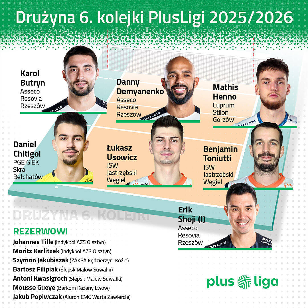 To była kolejna emocjonująca seria gier w naszej zawodowej lidze. Na siedem rozgrywanych meczów, aż cztery rozstrzygnęły się dopiero po tie-breaku! W hitach górą ekipy z Jastrzębia-Zdroju i Rzeszowa, ale wspaniałą bitwę stoczyli też gracze Cuprum Stilonu ze Ślepskiem Malow. Działo się, więc wybór szóstek był naprawdę trudny.
