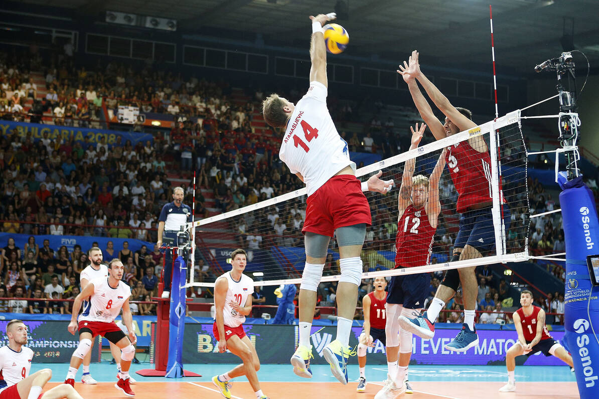 Już w pierwszej kolejce spotkań fazy grupowej kibice w Bari byli świadkami niesamowitego, pięciosetowego meczu z udziałem Amerykanów i Serbów, który został rozegrany na koniec dnia. W pierwszym secie na boisku istniała tylko jedna drużyna i była nią Serbia. W drugim role się odwróciły i to siatkarze USA dominowali na parkiecie w każdym elemencie. Dwie kolejne partie były wyrównane i dopiero w końcówce szala zwycięstwa przechyliła się najpierw na stronę podopiecznych Nikoli Grbicia, a następnie Johna Sperawa. Z minuty na minutę emocji było coraz więcej. A ich kumulacją był tie-break, którego Amerykanie rozpoczęli od prowadzenia 4:0 i wypracowaną przewagę utrzymali przed zamianą stron 8:5. Serbowie walczyli do końca, ale w najważniejszych momentach piątej partii lepsi okazali się siatkarze USA. Wygraną skutecznym atakiem z prawego skrzydła przypieczętował Matthew Anderson.