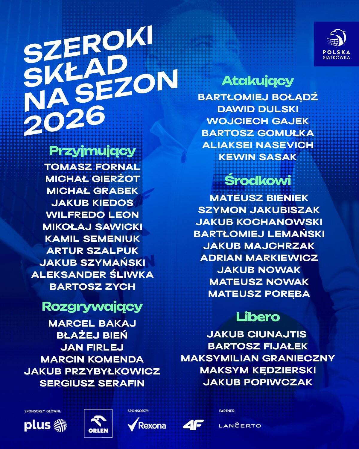 Nikola Grbić ogłosił skład szerokiej kadry na sezon reprezentacyjny 2026. Na liście znalazło się 37 nazwisk, a zdecydowana większość to oczywiście reprezentanci klubów PlusLigi, choć są też siatkarze występujący w PLS 1. Lidze.