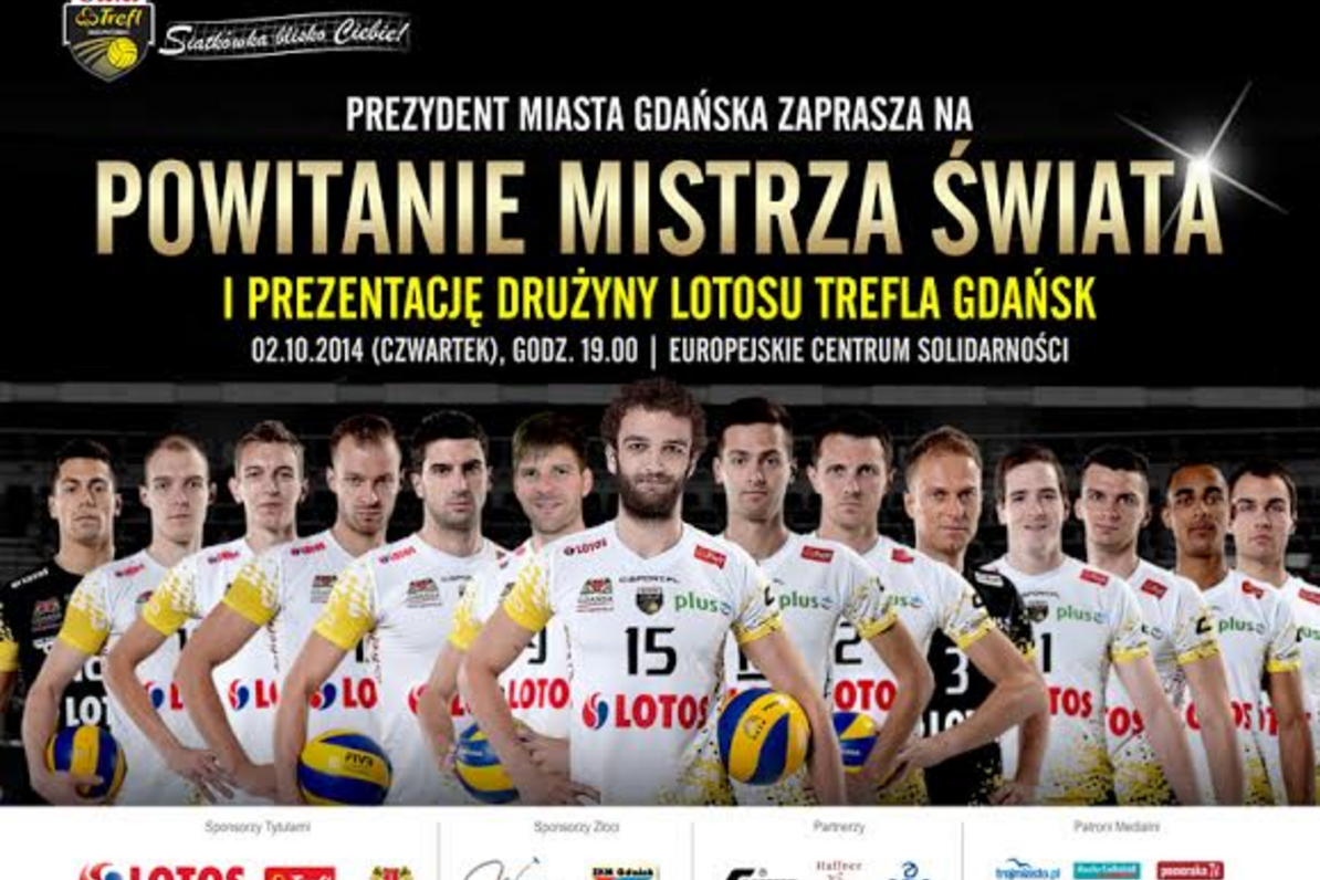 Powitanie mistrza świata i prezentacja drużyny LOTOSU Trefla Gdańsk odbędzie się w nietypowym miejscu – nowo otwartym Europejskim Centrum Solidarności przy Placu Solidarności 1 w Gdańsku. Ceremonia odbywać się będzie w audytorium, do którego wpuszczonych zostanie pierwszych 300 chętnych. 700 kolejnych fanów prezentację obejrzy na żywo na ekranach usytuowanych w Ogrodzie Zimowym ECS. Później obie grupy będą mogły spotkać się z siatkarzami, zapolować na autografy i zdjęcia oraz pogratulować mistrzostwa Mice i Schwarzowi, którzy na prezentację przyniosą wywalczone w Katowicach medale. Łącznie z graczami LOTOSU Trefla spotkać się będzie mogło około 1000 fanów.