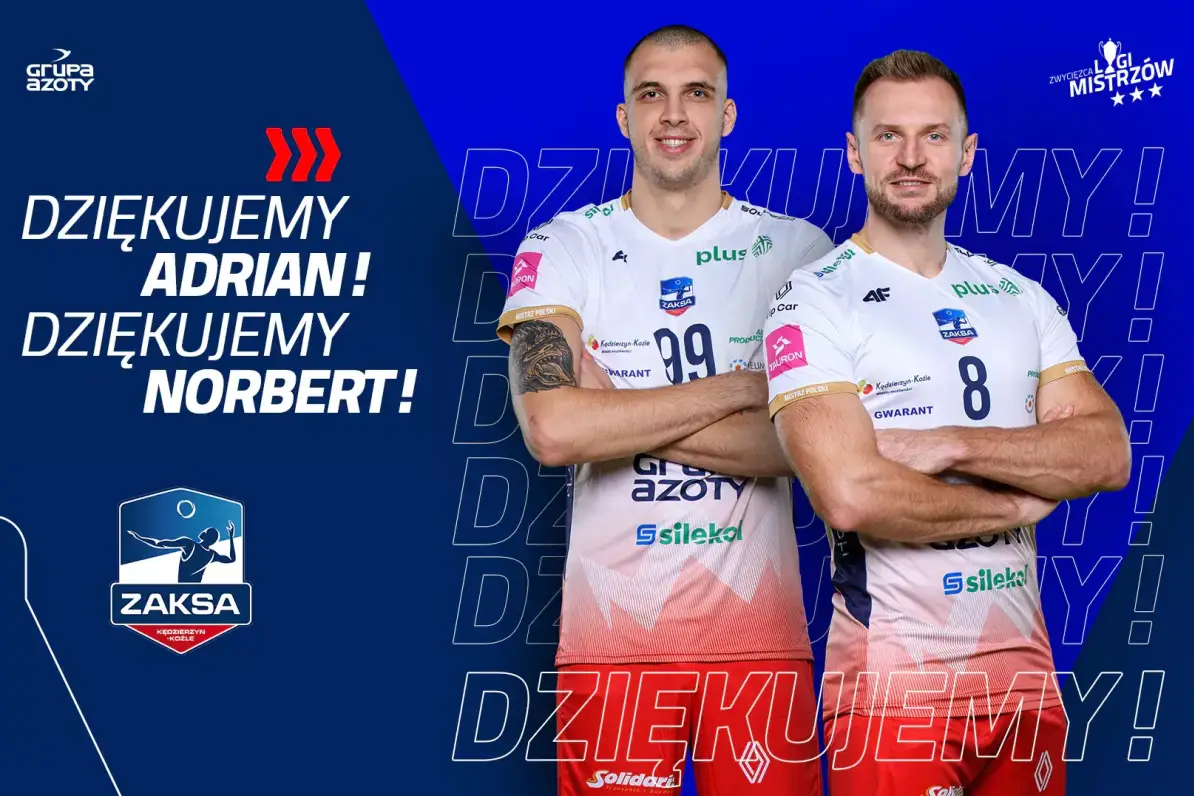 Z Grupą Azoty ZAKSĄ Kędzierzyn-Koźle żegnają się przyjmujący Adrian Staszewski oraz środkowy Norbert Huber.