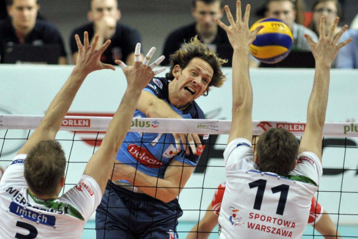 Delecta Bydgoszcz: Masny, Konarski, Wrona, Jurkiewicz, Wika, Antiga, Dębiec (libero) oraz Lipiński.