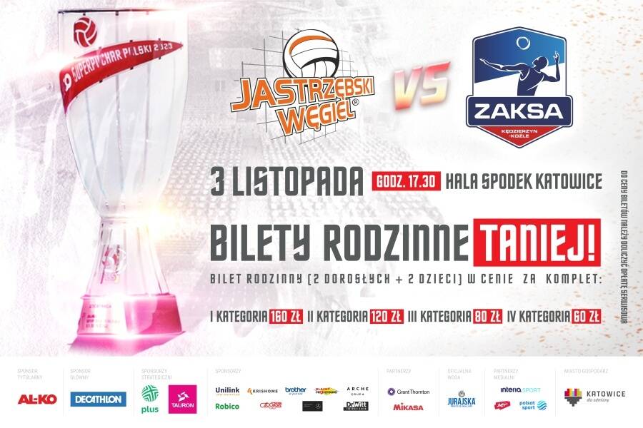 Zagrali w finale PlusLigi i Ligi Mistrzów, a teraz zagrają w meczu o AL-KO Superpuchar Polski! 3 listopada, w katowickim Spodku, odbędzie się pierwsze starcie w tym sezonie dwóch najmocniejszych polskich drużyn ostatnich lat – Jastrzębskiego Węgla i Grupy Azoty ZAKSY Kędzierzyn-Koźle. Już teraz można kupować wejściówki na to wyjątkowe wydarzenie, a ich ceny rozpoczynają się od 10 złotych. – Chcemy, tak jak w Krakowie, wypełnić kolejną wielką halę. Ceny biletów są bardzo przystępne, chcemy razem stworzyć wyjątkowe siatkarskie święto – mówi Artur Popko, prezes Polskiej Ligi Siatkówki.